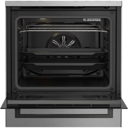 Aragaz mixt cu 4 arzătoare pe gaz și cuptor electric spațios (≈66 L), dotat cu aprindere electrică, grill și funcție de gătire asistată cu ventilație pentru rezultate uniforme. Designul din inox este durabil și ușor de curățat, iar funcțiile utile precum temporizatorul și iluminarea interioară fac gătitul de zi cu zi simplu și eficient.